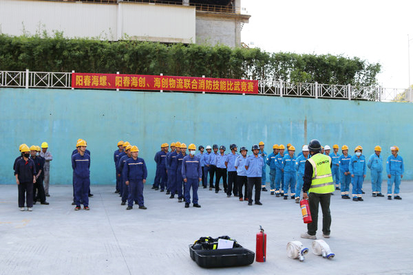 筑牢安全“防火墻”——陽春海創(chuàng)與陽春海螺聯(lián)合開展消防技能比武活動