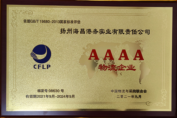 揚(yáng)州海昌榮獲“國(guó)家AAAA級(jí)物流企業(yè)” 認(rèn)定