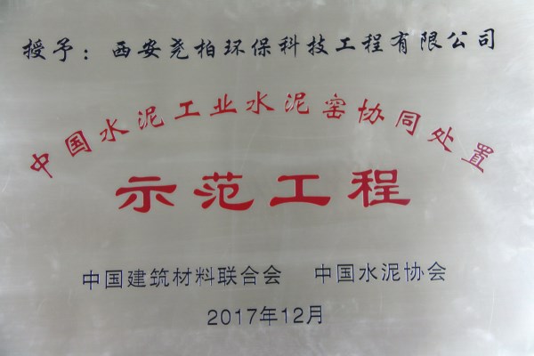 ? ? 2017年12月從中國建筑材料聯合會、中國水泥協會傳來喜訊,堯柏環保榮獲2017年“中國水泥工業水泥窯協同處置示范工程”稱號,據悉獲得此項榮譽的全國僅有13家單位。