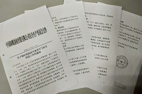 ? ? 針對低溫雨雪天氣可能帶來的嚴重危害,公司密切跟蹤天氣變化趨勢,并及時準確掌握低溫雨雪冰凍等預警預報信息,第一時間向員工發布,提前做好預防工作,加強對有限空間作業、車輛運輸、主要危險源、倉庫等重點部位的安全防范檢查。嚴格執行管理人員帶班、24小時值班制度和事故信息報告制度,重要崗位實行雙崗制,值班人員必須堅守崗位。重點抓好消防、用電管理、設備潤滑、應急物資儲備和員工上下班交通安全。