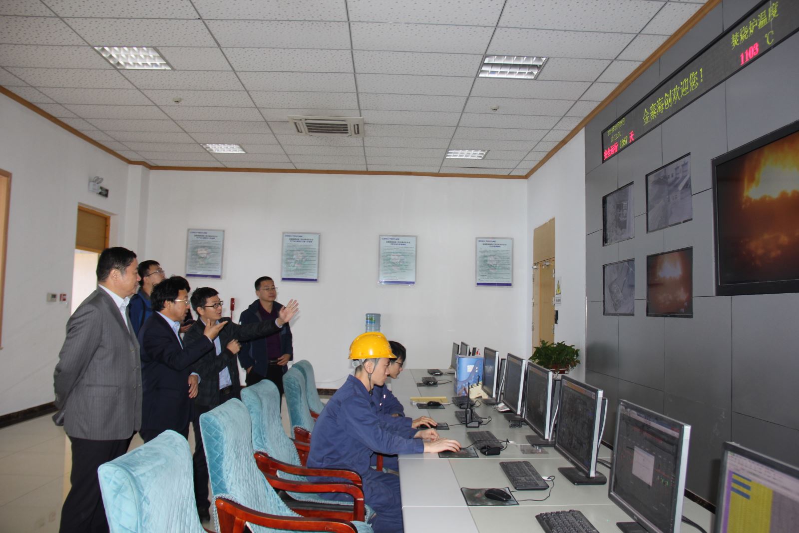 ? ? 在六樓垃圾吊操作室,一行人觀看了進廠垃圾的均化、打堆、投料等過程;隨后,一行人來到了中控室,在副總經理余海洋的介紹下,參觀團對垃圾焚燒的整個操作流程,垃圾儲存投放發(fā)酵、廢水廢氣及殘渣處理狀況、焚燒系統的整體運行工況等內容有了更進一步的了解。