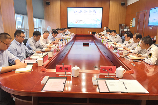 為加強與港航主管部門的溝通交流,解決企業遇到的實際困難,10月14日,長江港航物流聯盟江海聯運專委會組織各主要成員單位到江蘇海事局拜訪交流。江蘇海事局局長朱汝明、副局長王秀峰、各處室負責人,長江港航物流聯盟理事長蔡年生,海螺創業副總經理汪學森,以及其他成員單位負責人參加交流會議。