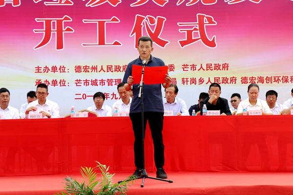 芒市副市長孟玉相坐代表芒市人民政府致辭。她首先向公司開工儀式的舉行致以熱烈的祝賀,表示市鎮(zhèn)府、各相關局委及鄉(xiāng)鎮(zhèn)將全力支持好、配合好項目建設,努力為項目建設提供優(yōu)質服務、創(chuàng)造寬松環(huán)境,全程、全時、全力關注支持公司建設,確保項目早建成、早投產、早為芒市人居環(huán)境提升做貢獻。