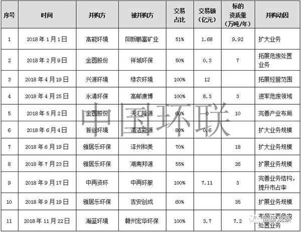 ? ? 2018年1-11月危廢行業(yè)并購(gòu)案