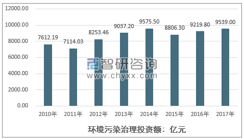 ? ? 近年來,國家用于環境污染治理的投資總額也保持震蕩上升的趨勢。2014年,我國環境污染治理投資達到了9,575.50億元的高點,2015年有所下降,2016年開始有所回升,2017年達到了9,539.00億元,2006年至2017年年均復合增長率達到了12.68%。