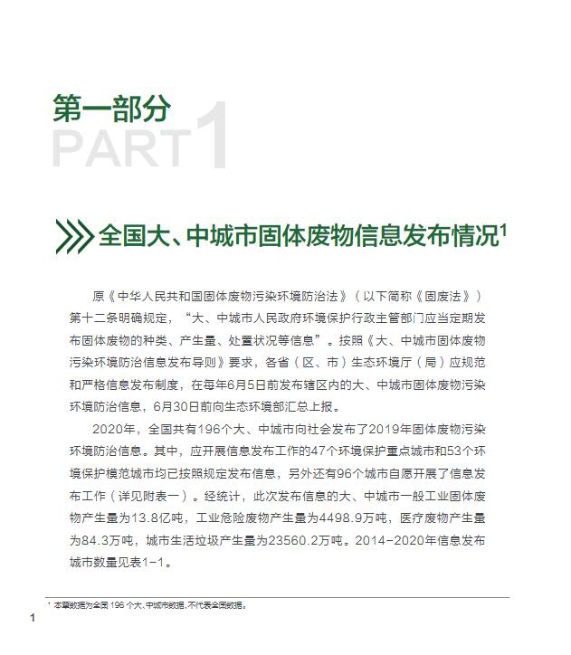 近日,《2020年全國大、中城市固體廢物污染環(huán)境防治年報》公布。