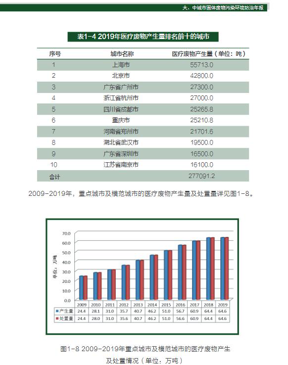 2019年,196個大、中城市醫(yī)療廢物產生量84.3萬噸,產生的醫(yī)療廢物都得到了及時妥善處置。