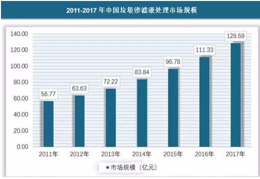 ? ? 與之一同增長的還有市場(chǎng)規(guī)模,相關(guān)數(shù)據(jù)顯示,2017年我國垃圾滲濾液處理市場(chǎng)規(guī)模達(dá)到128.59億元,較2016年多了17.26億元,增長了15.5%。