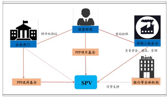 ? ? 以生態環保PPP項目為例,在PPP項目中環保建設企業與政府部門成為聯合體,并且通過引進第三方社會資本實現建設資金多元化,項目資本金以外的缺口通過銀行貸款解決。這些多方參與主體聯合建立新的融資平臺,即SPV公司。與傳統模式不同,環保工程企業不再承擔原有的融資重任,取而代之SPV公司成為新的舉債主體,環保工程企業不僅現金流得到改善,且工程款結算得到保障,從而解決了資金密集、回款困難、周期長、經營性現金流差等行業痛點。