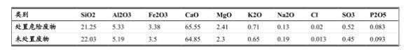 北京水泥廠投加危險廢棄物前后熟料化學成份對比(%)表明協(xié)同處置危廢后對水泥品質(zhì)影響不大