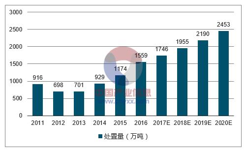? ? 以全國環境統計公報數據為基礎,假設未來幾年危廢產生量保持過去十年復合增長率12%的增速,保守估計處置比例為35%,假設單位處置成本為2500元/噸,則預計2020年危廢處置市場為613億元,2017-2020處置市場空間總計2086億元??紤]到還有大量的危廢沒有進入國家統計口徑,若未來幾年這一部分的危廢產生量逐漸釋放,市場空間還將提升2-3倍。