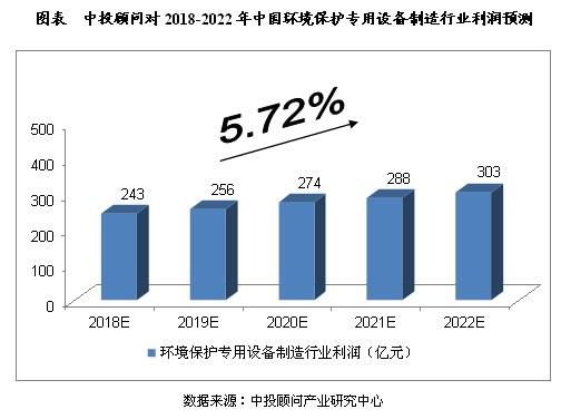 ? ? 綜合以上因素,我們預計,2018年我國環境保護專用設備制造行業利潤將達到243億元,未來五年(2018-2022)年均復合增長率約為5.72%,2022年將達到303億元。