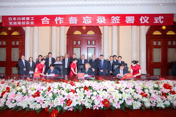 On 8 September 2015, the delegation of Kawasaki Heavy Industry(“KHI”)visited Conch Venture and attended the signing ceremony of the memorandum of understanding on deepened cooperation with Conch Venture.