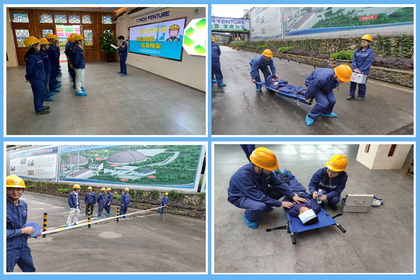 ? ? 根據(jù)活動(dòng)方案本次演練人員共分為四組,分別負(fù)責(zé)現(xiàn)場(chǎng)事故信息報(bào)告、中暑人員搶救、疏導(dǎo)交通線路、救援演練車輛安排以及應(yīng)急資金的及時(shí)供應(yīng)。公司安全員全稱記錄演練過(guò)程并留存音視頻資料學(xué)習(xí)。在預(yù)設(shè)情景下,某班組工人出現(xiàn)暈厥倒地的中暑癥狀,班組長(zhǎng)發(fā)現(xiàn)情況后立即向公司安全員及部門領(lǐng)導(dǎo)匯報(bào)并組織人員開展急救工作,同班組人員將“中暑人員”抬至通風(fēng)陰涼處,脫掉“中暑人員”安全帽等勞保用品,解開上衣紐扣,利用濕毛巾幫助“中暑人員”降溫,救護(hù)組接到通知立即攜帶急救箱趕往現(xiàn)場(chǎng),幫助“中暑人員”口服藿香正氣水,并輔通過(guò)掐人中等措施,使“中暑人員”改善中暑癥狀,與此同時(shí),警戒小組迅速疏導(dǎo)交通線路,設(shè)立隔離帶,后勤小組同步安排救援車輛入廠并模擬撥打120求助,說(shuō)明病情、病因、接應(yīng)地點(diǎn)等情況。